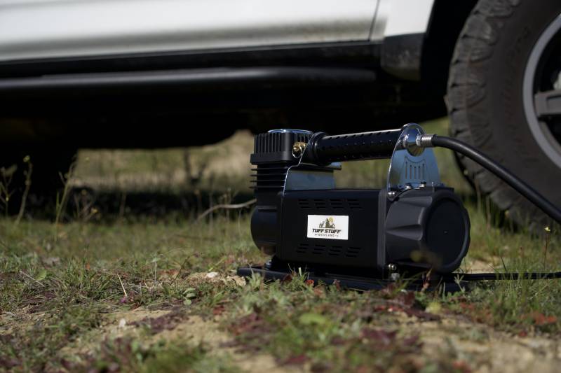 TUFF AIR 160L UNIVERSAL COMPRESSOR WITH HOSE AND STORAGE BAG Tuff Stuff® products were born out of demand for quality overland, off road recovery gear, lighting, winches and bumpers at affordable prices.