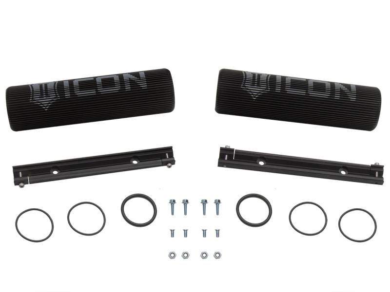 10" FINNED RESI UPGRADE KIT In an effort to continue our push for excellence ICON is proud to introduce finned reservoir upgrade kits for our 2.5 Series piggyback and remote reservoir shocks. These reservoir upgrade kits will improve the look of any ICON-equipped fender well while allowing for a cleaner install utilizing the included dove tail reservoir clamp. Aside from improving the aesthetics of an existing ICON shock, these finned reservoir kits have functional advantages as well. A surface area increase of 115% provides improved heat dissipation and allows for the shocks to be pushed harder for a longer duration of time before experiencing a reduction in damping ability. This is especially important in ICON CDC Valve shocks, as heat is generated in the reservoir as well as the shock body. Another functional benefit to these new ICON finned reservoirs is dent resistance. In extremely rare cases a standard aluminum reservoir can be hit with rocks or debris and if dented, affect the function of the shock. The design of the ICON finned reservoir increases rigidity, while utilizing a slightly larger outside diameter allowing the fins to take the brunt of potential off-road damage without distorting the inner sealing surface.