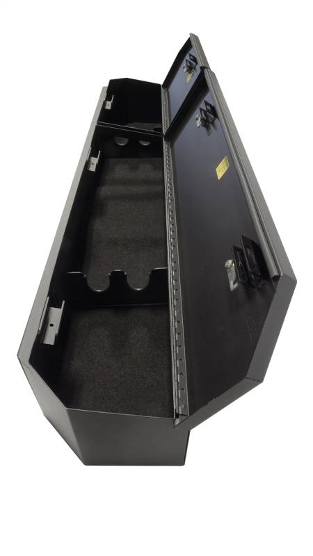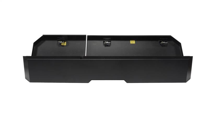 Lockbox | Underseat Full | Chevy/GMC Crew Cab | Standard Key | 2019-2026 The Tuffy lockbox mounts under the rear seat in Chevy and GMC Crew Cab and Double Cab pickup trucks. This high security welded steel security lockbox has a full width formfitting design creating over 3500 cubic inches of lockable storage. Easily access your secured contents by flipping up the corresponding lid under your 60/40 split bench seat. The unique design allows the full width to be used to stow firearms or other long items. Feel confident securing your gear using Tuffy's Pry-Guard Locking System with a 10 tumbler double bitted security lock with built in weather seals. Mounts inconspicuously under the seat out of sight of opportunistic thieves with chamfered corners for easier passenger access. Declutter your space by quickly and easily installing this Tuffy lockbox using the factory hardware without drilling. When you need additional floor space, simply remove the lockbox in seconds without the need for any tools.