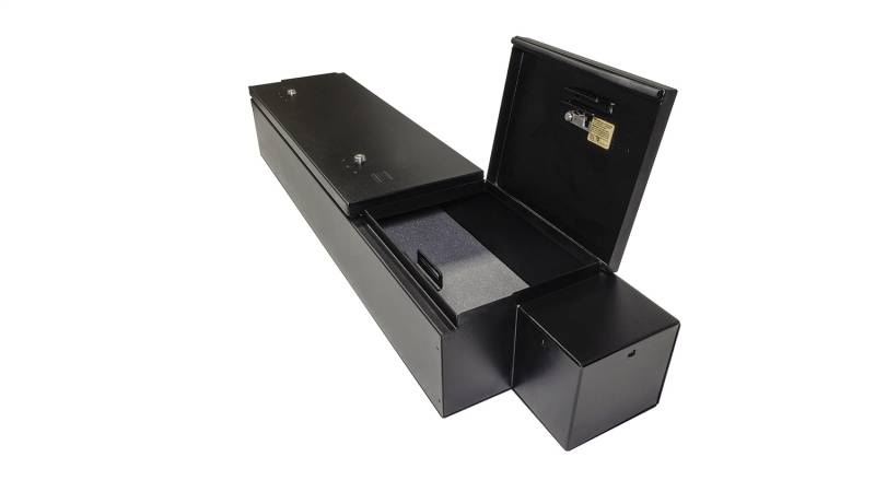 RAM CREW CAB | Rear Underseat Lockbox | Standard Key | 2019-2026 Organize your 2019-2024 Ram 1500 Crew Cab truck with the Tuffy under-seat lockbox. This high security welded steel security lockbox has a full width formfitting design creating over 3,000 cubic inches of lockable storage. Easily access your secured gear by flipping up the lid of your 60/40 split bench seat. The unique design allows the full width under the seat to be used to organize and secure whatever life demands of you. Provide additional organizational options by adding a set of twist-to-lock pressure fit dividers, specifically designed for your RAM lockbox. Feel confident securing your gear using Tuffy's Pry-Guard Locking System with a 10 tumbler double bitted security lock with built in weather seals. Mounts inconspicuously under the seat out of sight of opportunistic thieves. Declutter your space by quickly and easily installing this Tuffy lockbox using the factory hardware without drilling.