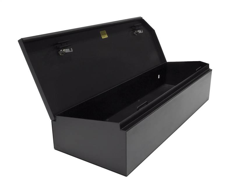 Lockbox | Underseat Full | Ford F-Series Super Crew 60% Bench | Standard Key | 2 This high security welded steel security lockbox mounts under the rear 60 percent bench seat in your 2015-2024 Ford F-150 or 2017-2024 Ford F-250/F-350/F-450 Super Duty SuperCrew truck. The three-fifths width formfitting design of the Tuffy lockbox has over 3800 cubic inches of lockable storage while leaving room for an aftermarket sub-woofer or other gear under the rear passenger side seat. Its secured contents are easily accessed by flipping the 60 percent rear bench seat up and lifting the lid. The unique design allows the space beneath the 60 percent bench seat to be used to stow firearms or other long items securely. This lock box comes standard with Tuffy's Pry-Guard Locking System and a 10 tumbler double bitted security lock with built in weather seals. Chamfered corners are incorporated into the design for easier passenger access and a more concealed form factor. The innovative mounting system is accessed from inside the box.