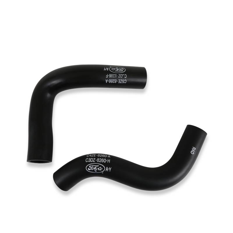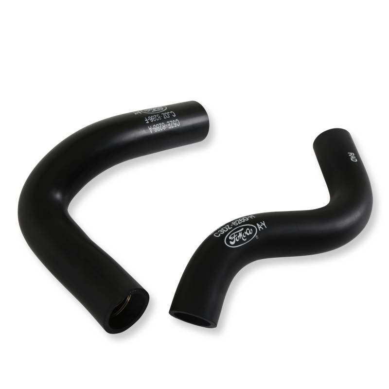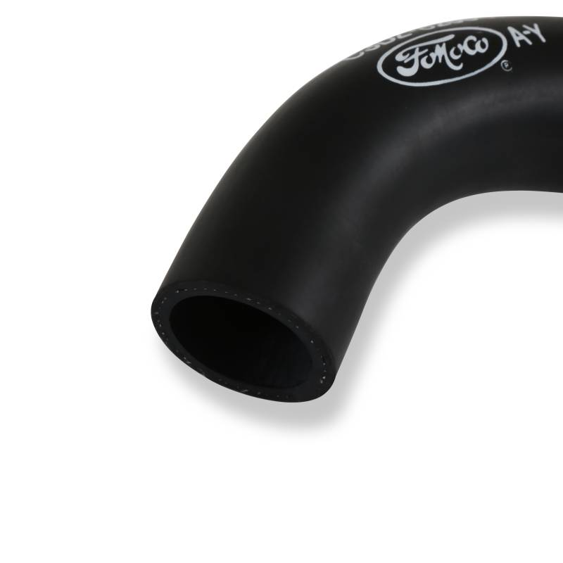 These are the best concourse radiator hoses on the market. New improved stamping will not come off even when in contact with antifreeze. All have imprints that are very crisp and authentic. Each imprint is concourse correct for the specific application year. Represented by an oval FoMoCo, rectangle FoMoCo, Autolite logo or Motorcraft.
