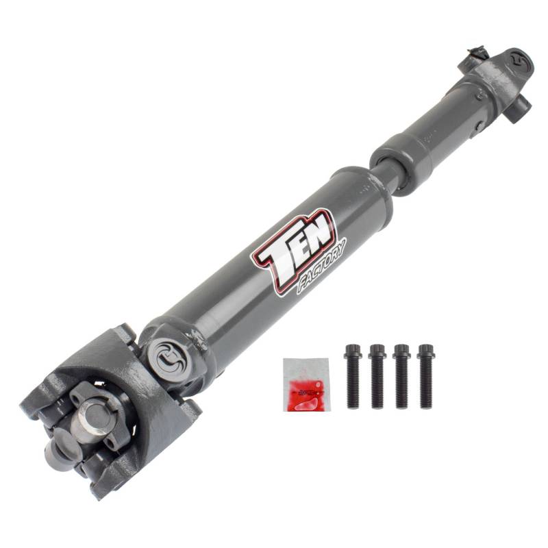 LJ REAR 1310 SOLID CV DRIVESHF TEN Factory - Precision Forged for Quality, Strength and Performance. All TEN Factory axles feature a 10-year replacement warranty! Front axles and two axle rear kits are black oxide coated. TEN Factory is the brand you can trust for the highest-quality engineered axle shafts and replacement kits. Built with the toughest materials, the wear-resistance of forged steel is heat-treated to produce durable axle shafts for your Jeep, car or truck. Buy with confidence knowing that the latest technologies in metallurgy, heat treating and CNC machining have produced an axle you can count on in the most difficult conditions.