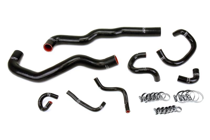 3-ply reinforced silicone radiator, heater and throttle body coolant hoses This HPS High Temp 3-ply Reinforced Silicone Coolant Hose Kit is designed to replace stock OEM rubber radiator, heater, and throttle body hoses that are known to harden and fail over time. With premium quality silicone and race inspired design, this coolant hose kit can withstand the harsh, high temperature and high pressure operating conditions under the hood through a wide range of driving conditions. HPS silicone hose kits have all the correct bends and dimensions to perfectly fit as replacements for OEM rubber coolant hoses. Compared to the universal hoses from the local auto store, HPS silicone hose kits are much easier to work with. Maximum temperature rating: 350 degrees Fahrenheit. 100% stainless steel clamps are included for easy installation. Ideal upgraded replacement for the OEM rubber radiator, heater, and throttle body hoses which harden and fail over time. Withstands harsh high temperature and high pressure operating conditions while maintaining peak performance during competition or daily driving. Max. temperature rating: 350F (177C). Includes HPS 100% stainless steel industrial grade embossed hose clamps which will not cut through silicone hoses. Engineered to ensure long lasting quality over stock rubber hoses. Custom designed by HPS.