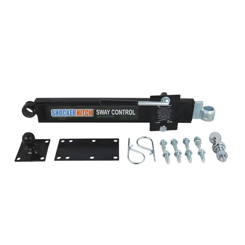 If you are experiencing trailer sway while towing check out the Shocker hitch sway bar arm kit will help reduce trailer sway. This is a very economical way to assist with fixing trailer sway problems. Whether you are towing campers or smaller or larger trailers, you may experience trailer sway from wind, passing vehicles, and rough & uneven road surfaces. This friction sway control arm bar kit is made to prevent the trailer from swaying. We offer a sway control arm bar system kit that works with the many different Shocker Hitch ball mounts that have sway bar mounting tags. Available in combo, drop, or raised ball with sway bar tabs (sold separately). The friction sway bars attach to the front of your trailer on the side of the a-frame and your ball mount attachment with sway bar tabs. This sway control system is used to stiffen the connection between the truck and trailer, keeping it straight and in line with the towing vehicle. The arm is adjustable, and you increase the resistance on the highway and can reduce the resistance when in town or taking sharp corners. Learn more about preventing & fixing trailer sway. This kit works with Shocker sway control hitches. You will want to use one (1) Shocker sway control system when towing up to 10,000 pounds and/or 24' trailers & when towing over 10,000 pounds and/or trailers longer than 24', two (2) Shocker sway control systems may be required. A single system comes with an adjustable sway control friction arm assembly, one 1-1/4" trailer-mounted mini ball, one 1-1/4" hitch-mounted ball with the lock washer and nut for your sway control ball mount tab along with 4 metal lag screws and 2 retaining clips. This is great for travel camping trailers, heavy-duty trailers, race trailers, and toy haulers.
