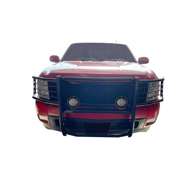 Grille Guard Kit Black Horse Off Road Grille Guard Kit Black Steel Modular Pair of 5.3" Dia. LED Flood Lights w/ Black Trim Rings Wiring Harness and Switch It May Interfere with Vehicles equipped with Emergency Braking Systems, Adaptive Cruise Control and Parking Sensors Black Horse Off-Road Modular Design Black Powder Coat Grille Guard Kit 17A035700A2MA-PLFB Compatible with 2007-2013 Chevrolet Silverado 1500 No-Drill/ Vehicle-Specific Application for Custom Fit'solid frame-mounted bolt-on, no drill installation / Welded 3-piece bolt-together construction ?" thick HRPO vertical steel plates