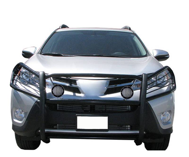 Grille Guard Kit Black Horse Off Road Grille Guard Kit Black Steel Modular Pair of 5.3" Dia. LED Flood Lights w/ Black Trim Rings Wiring Harness and Switch It May Interfere with Vehicles equipped with Emergency Braking Systems, Adaptive Cruise Control and Parking Sensors Black Horse Off-Road Modular Design Black Powder Coat Grille Guard Kit 17A093902MA-PLFB Compatible with 2006-2018 Toyota RAV4 No-Drill/ Vehicle-Specific Application for Custom Fit'solid frame-mounted bolt-on, no drill installation / Welded 3-piece bolt-together construction ?" thick HRPO vertical steel plates