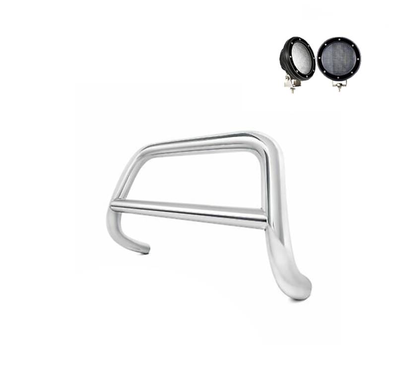 A Bar Kit Black Horse Off Road A Bar Kit Stainless Steel Stainless Steel No skid plate Pair of 5.3" Dia. LED Flood Lights w/ Black Trim Rings Wiring Harness and Switch 2.5" Dia Tube It May Interfere with Vehicles equipped with Emergency Braking Systems, Adaptive Cruise Control and Parking Sensors Polished Stainless Steel A Bar / Sport Bar Kit (CBS-B7502-PLFB) by Black Horse Off Road compatible with 2020-2023 Kia Telluride/2020-2023 Hyundai Palisade No-Drill/ Vehicle-Specific Application for Custom Fit Solid frame-mounted bolt-on Welded 1-piece construction Comes with a set of 5.3" Black Round Flood LED Lights