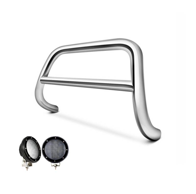 A Bar Kit Black Horse Off Road A Bar Kit Stainless Steel Stainless Steel No Skid Plate Pair of 5.3" Dia. LED Flood Lights w/ Black Trim Rings Wiring Harness and Switch It May Interfere with Vehicles equipped with Emergency Braking Systems, Adaptive Cruise Control and Parking Sensors Polished Stainless Steel A Bar / Sport Bar Kit (CBS-TOB4802-PLFB) by Black Horse Off Road compatible with 2019-2024 Toyota Rav4/2021-2024 Toyota Venza No-Drill/ Vehicle-Specific Application for Custom Fit Solid frame-mounted bolt-on Welded 1-piece construction Comes with a set of 5.3" Black Round Flood LED Lights