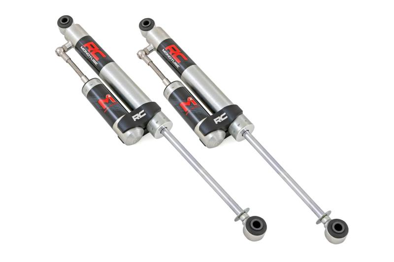 Unmatched Control. Maximum Performance: Rough Country's M1R Monotube Shocks with External Reservoir deliver the perfect blend of control, comfort, and endurance. Designed to handle the harshest terrains and heaviest loads, the M1R ensures your ride performs at its peak, on or off the road.Built for Heat, Engineered for Pressure: Featuring an advanced 46mm monotube design and external reservoir, the M1R delivers faster heat dissipation and fade-free performance in any environment. An internal floating piston separates oil and gas for consistent damping, even during extreme use.Precision Performance and Comfort: With a 2-inch digressive piston and self-adjusting deflective-disc valving, the M1R adapts to changing terrains on the fly, giving you superior handling and ride quality. Whether cruising pavement or crawling trails, experience control without compromise.Unyielding Strength, Built to Last: From the 2-inch seamless extruded body to the 16mm case-hardened, chromed rod, every component is crafted for extreme durability. The galvanized zinc finish protects against corrosion, while natural rubber bushings minimize noise and vibration.Confidence You Can Count On: Backed by Rough Country's 3-year manufacturer's warranty, the M1R is built to go the distance, reliable, rugged, and ready for anything.