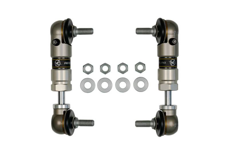 Ready to experience the increased comfort and compliance benefits of a sway bar disconnect, without the tedious process of removing a sway bar link? The revolutionary AIRLYNX by Apex Designs is here to change the way you think about how a sway bar can work. While sway bars offer a huge benefit on road, and create much of the 'return to center' feel you get in the chassis, they can be detrimental to handling offroad and limit your articulation when you need it most.\nThe concept is simple: replace the rigid link connecting your sway bar end to your suspension with these small links, each containing an air spring. The pressure inside the spring dictates the behavior of the sway bar, softening the initial rate on turning or impacts felt only by 1 corner at a time, like a pothole or diagonal driveway entry. This softening of the rate takes out a lot of the initial head toss, without completely eliminating the benefits of a sway bar. Think of it like a 'progressive' sway bar.\nAIRLYNX are perfect for the customer that wants the ability to exert fanatical control every aspect of suspension compliance and vehicle handling characteristics. These links allow you to fine-tune the air pressure inside them, which determines the way your sway bar will behave. Due to the extremely progressive nature of air springs like this, they maintain some return to center even at a very low pressure, but allow the 2 sides of your suspension to operate with much less restriction, increasing articulation and traction when off road. When fully inflated to maximum pressure range, they effectively lock out like a rigid link and preserve your original handling.\nUsing these links is as simple as connecting a small mountain bike style air shock pump to fine tune the pressure. Because no tools are required, you can be done in a flash, typically while your tires are still airing up.