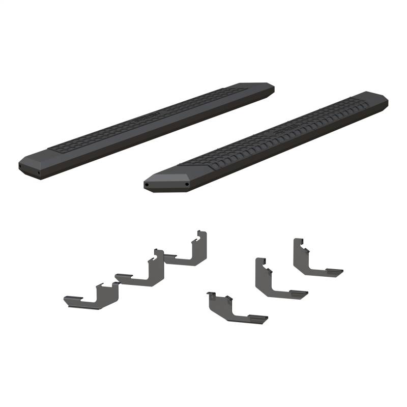 AdvantEDGE 5-1/2" x 85" Black Aluminum Side Bars, Select Ford Ranger Crew Cab ARIES AdvantEDGE side bars do away with the common, rounded look of other side bars, nerf bars and running boards, featuring an angular, eight-sided tube profile and powder-coated all-aluminum construction. The angular edges provide a clear-cut, uncompromising accent for the look of today's trucks. Made from 5-1/2" wide, eight-sided, extruded aluminum tubing, AdvantEDGE running boards are strong, lightweight and impervious to rust, offering a solid step that is built to face the elements and outlast them. They also come with die-cast aluminum end caps and a stamped aluminum tread. The aluminum treads provide a long-lasting, non-skid stepping surface that will not crack or fade in the sun. ARIES AdvantEDGE side bars are also marked for their easy, custom-fit installation. They feature the ARIES VersaTrac mounting system with brackets that are made from powder-coated steel and built for specific vehicles. This particular set of custom running boards fits specific years of the Ford Ranger crew cab (see application info to verify compatibility). The high-strength steel brackets mount using pre-existing holes, and the aluminum running boards attach to the brackets with heavy-duty hardware. The VersaTrac mounting system makes installation simple and customizable, allowing the side bars to be swapped out at any time with other side steps or running boards that use the VersaTrac system. Setting yourself apart is simple with the ARIES AdvantEDGE series. In addition to these truck side steps, we also offer the AdvantEDGE bull bar and AdvantEDGE headache rack, featuring the same all-aluminum construction and eight-sided tube profile. For a fully customized look to match your pickup, AdvantEDGE side bars are available in two finish options, including carbide black powder coat and chrome powder coat. Unique, eight-sided tube profile to complement the style of modern trucks Extruded, all-aluminum construction to be strong, lightweight and rust-free Stamped aluminum treads for a non-skid step that will never crack or fade Die-cast aluminum end caps for a durable accent Tough carbide black powder coat finish with textured black powder-coat step pads