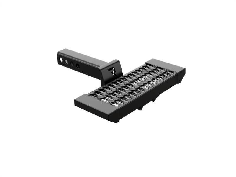 Growler Hitch Step The all-new Growler Hitch Step makes for a great addition to any vehicle that has a 2” or larger receiver. Once installed, the GHS provides easy access to the bed of your truck or the roof of your SUV or Jeep. Footing is secure and reliable in the harshest conditions with its 19”x7” sure-grip platform and features a custom anti-rattle clip designed for secure and quiet mounting. All Growler Hitch Steps are finished with our long-lasting, zinc primered - black textured powder-coating and include a hitch pin for proper mounting. 19” x 7” sure-grip platform provides secure footing in all conditions - load tested to 465lbs Direct fit into a standard 2” hitch receiver, includes hitch pin Allows for easy access into your truck bed or roof rack Custom-designed anti-rattle clamp allows for secure rattle free installation Textured Black powder-coat finish - Lifetime workmanship / 5-Year Finish warranty