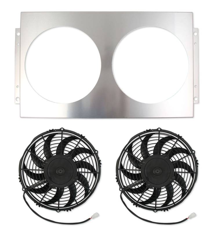 High-Horsepower street cars and trucks can be a challenge to keep cool. A proper cooling system is essential to maximizing your vehicles performance and increasing the longevity of your ride. Electric Fans and shrouds can improve the efficiency of your radiator and eliminate parasitic power drain from factory style mechanical cooling fans.\nHolley is pleased to introduce its latest offering – Frostbite "High Performance" Series Fan/Shroud packages for Frostbite Aluminum Radiators. Our "High Performance" series of fan/shroud packages will be direct applications specific fittings for our existing 2, 3, and 4-row Frostbite Aluminum radiators.