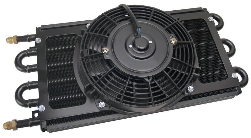 6 Pass 18" Dyno-Cool Remote Cooler, -6AN The Dyno-Cool Universal Remote Cooler can be mounted anywhere space permits, using a highly efficient copper tube/aluminum fin cooler and a curved blade fan to provide airflow and extend transmission life. Perfect for medium duty use. Mounting kit not included. 6 Pass 18" Dyno-Cool Remote Cooler, -6AN