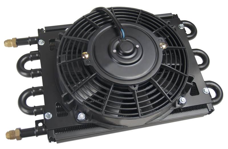 6 Pass 14" Dyno-Cool Remote Cooler, -6AN The Dyno-Cool Universal Remote Cooler can be mounted anywhere space permits, using a highly efficient copper tube/aluminum fin cooler and a curved blade fan to provide airflow and extend transmission life. Perfect for medium duty use. Mounting kit not included. 6 Pass 14" Dyno-Cool Remote Cooler, -6AN