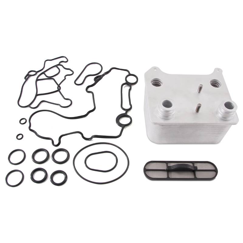 Ford 6.0L Powerstroke Replacement Oil Cooler, 2003--2007 Oil is the lifeblood of an engine, and in a hardworking diesel engine like the 2003--2007 6.0L Powerstroke, keeping that oil cool is essential to the engine's health and running. The stock 2003--2007 Powerstroke liquid-to-liquid oil cooler uses engine coolant to draw heat away from the oil and vent it through the engine radiator. it's a stout design that typically performs well for daily driven trucks. However, after over 12 years of service, many of those stock coolers have seen better days. A clogged or leaking oil cooler can reduce the oil's ability to transfer heat to the coolant, causing thinning and a loss of protection for critical engine components. That's why Mishimoto is proud to offer a stock replacement 2003--2007 Ford 6.0L Powerstroke oil cooler. This replacement cooler, complete with new seals and o-rings will restore your 6.0L Powerstroke's oil cooling and protect your engine from unnecessary wear. This cooler is a direct fit and provides all the cooling a daily driven 6.0L needs at an affordable price point. For even more protection, check out our 2003--2007 Ford 6.0L Powerstroke Coolant Filter Kit and 6.0L Catch Can Kit. Like all Mishimoto 6.0L Powerstroke products, this stock replacement oil cooler is backed by our Mishimoto Lifetime Warranty for a lifetime of worry-free driving. Replaces clogged or leaking stock oil cooler for renewed performance Included high-quality FKM seals and O-rings ensure a leak-free fit Combine with the Mishimoto 2003-2007 6.0L Powerstroke Coolant Filter Kit to help protect your new oil cooler from cooling system debris
