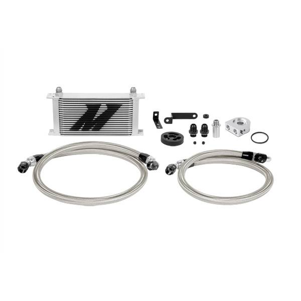 Subaru WRX Oil Cooler Kit, 2008+ High oil temperatures can wreak havoc on your high-performance flat four.Protect your investment with the Mishimoto direct-fit oil cooler kit designed specifically for the 2008+ Subaru WRX.The WRX has a lot to offer with its turbocharged engine and fantastic AWD system, but these vehicles are not factory-equipped with an oil cooler.Properly regulated oil temperatures become even more important if you have modified your vehicle or spend time tracking your WRX.Mishimoto's direct-fit oil cooler is engineered to reduce oil temperatures and extend the life of your engine.For optimal airflow and cooling, this kit includes a large 19-row cooler that is mounted in the front bumper with robust application-specific brackets.The included CNC-machined aluminum spacer provides ample room for our oil sandwich plate, making this kit compatible with the factory exhaust manifold heat shields.This kit includes preassembled stainless steel lines with -10AN fittings and a thermal reflective wrap that deflects radiant heat from the exhaust.With this setup, your WRX can achieve a 60-degree drop in oil temperatures with minimal pressure loss.The Mishimoto Subaru WRX oil cooler kit is available with a silver or black cooler and your choice of standard or thermostatic sandwich plates, for even greater control over your oil temperatures.As with all our products, this kit includes the Mishimoto lifetime warranty. Proven 25 F (13.9 C) drop in oil temperature Full bolt-on oil cooling solution for street and track vehicles No modification necessary for installation, functions with all stock equipment