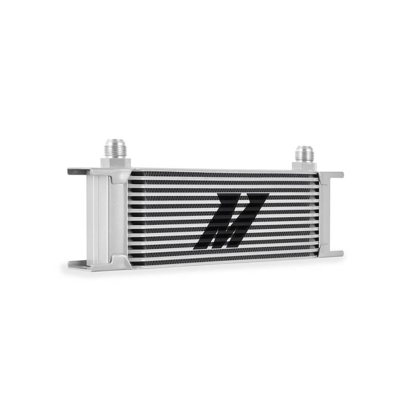 Universal Oil Cooler, 13-Row, Silver Maintaining appropriate oil temperature is key to extending the life of your vehicle's engine. Your engine oil is specifically designed to operate within a certain temperature and pressure range, ensuring proper lubrication and reduced wear. When a vehicle is extensively modified or used in high stress driving conditions, it's easy to exceed the limits of your engine oil, resulting in reduced lubrication and higher potential for wear and damage. The simple addition of a performance oil cooler is an easy way to reduce temperatures and bring them back into the effective range for proper lubrication. Mishimoto engineers have designed this 13-row stacked-plate oil cooler to provide substantial heat transfer and reduced temperatures. This oil cooler includes eight universal mounting holes, providing an abundance of options for mounting on your vehicle. Each cooler includes -10AN inlet and outlet fittings, ensuring leak-free operation. Mishimoto 13-row oil coolers are available in silver, black, or gold powder coated finishes. Be sure to pair with our -10AN braided hoses and -10AN aluminum fittings to complete your oil cooler installation. As with all our products, this 13-row fluid cooler includes our Mishimoto Lifetime Warranty. Robust 13-row stacked-plate oil cooler effectively reduces oil temps Helps protect critical engine components from premature wear Preserves oil viscosity for proper lubrication during aggressive driving