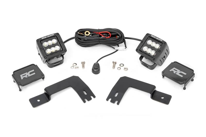 - Simple Bolt-On Installation: Mounts quickly and securely with no complicated modifications.\ Adjustable Swivel Mount: Easily position your lights for optimal coverage and precision.\ Black Series Option: Add Rough Country's Black Series LED pods for 4,800 lumens of reliable rear illumination.\ Spectrum Series Option: Upgrade to Rough Country's Spectrum Series LED pods for an impressive 9,600 lumens of rear illumination.\ High-Output OSRAM Upgrade: Maximize visibility with 3-inch OSRAM LED lights delivering a massive 13,500 lumens of rear-facing power.\ Rugged Steel Brackets: Powder-coated for superior durability and corrosion resistance.\ Weatherproof Design: IP67 waterproof rating ensures reliable performance in all conditions.\ Premium Die-Cast Aluminum Housing: Provides long-lasting strength and impact resistance.\ Moisture Breather Technology: Minimizes moisture buildup behind the lens to protect your LEDs.\ Complete Wiring Kit Included: Flat-wound harness with convenient on/off switch for easy operation.\ 3-Year Warranty: Peace of mind with quality you can trust..