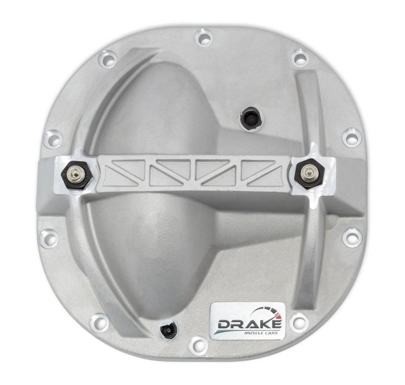 Drake Muscle Cars cast-aluminum Differential Girdle features beefy construction to help keep your rear axle housing from distorting. Features load bolts to keep the main differential caps from walking or distorting, a fill plug to save from the hassle of having to fill from the front of the rear axle housing, and a magnetic drain plug. Includes all necessary hardware to install except gasket. Note: Not for Mustangs with IRS and does not fit 2012+ Boss 302 or gear sets higher than 4.11.