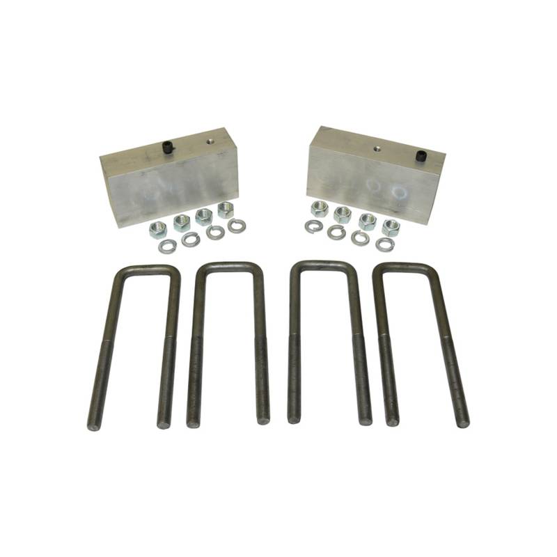 This is an inexpensive and easy way to lower your truck without a lot of work or affecting ride quality. Kits include blocks and U-bolts with hardware. This kit is for use with a stock rear axle and provides a 3-inch drop. Kit includes lower blocks and U-bolts with nuts and washers.