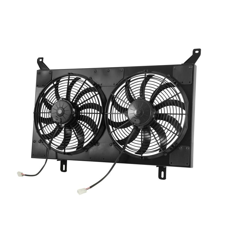 Custom mounts in the factory fan shroud location. Fan shroud housing incorporates high-speed ram air bypass. High temperature resistant plastic with patented skewed fan blade technology. High efficiency and fully adjustable thermostatic sensor offers increased fuel economy & horsepower. Requires a 70 amp or higher alternator.