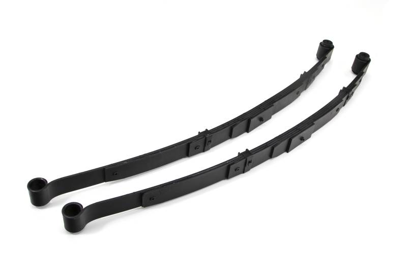 UMI’s rear leaf spring is a high perfomance solution to lowering the rear of your 1970-1981 Camaro or Firebird. These springs feature high quality US Steel, multi-leaf construction and lower the car an average of 2" to 2-½" below stock ride height. They bolt directly into the stock location with no modifications required. The front eyelet features a pre-installed rubber bushing to maintain ride comfort. The rear eyelet is bare and requires factory bushings or optional UMI 2625 (poly) or 2626 (Delrin) bushing and shackle kit.\nInstallation Note: Rear eyelet is bare and requires UMI 2625 (poly) or 2626 Delrin bushing kit to complete installation. UMI 2627 is an optional installation kit.\nFeatures:\n175 lb/in rate.\nExcellent for street, corner carving and auto-x.\nHeavy duty clips and advanced leaf design reduces spring wind-up as compared to stock.\nSprings are built with self lubricating plastic isolators to reduce friction and provide consistent spring performance.\nFront bushings pre-installed.\nReuse existing rear bushings or add optional UMI 2625 (poly) or 2626 (Delrin) bushing and shackle kit.\n100% Made In USA.