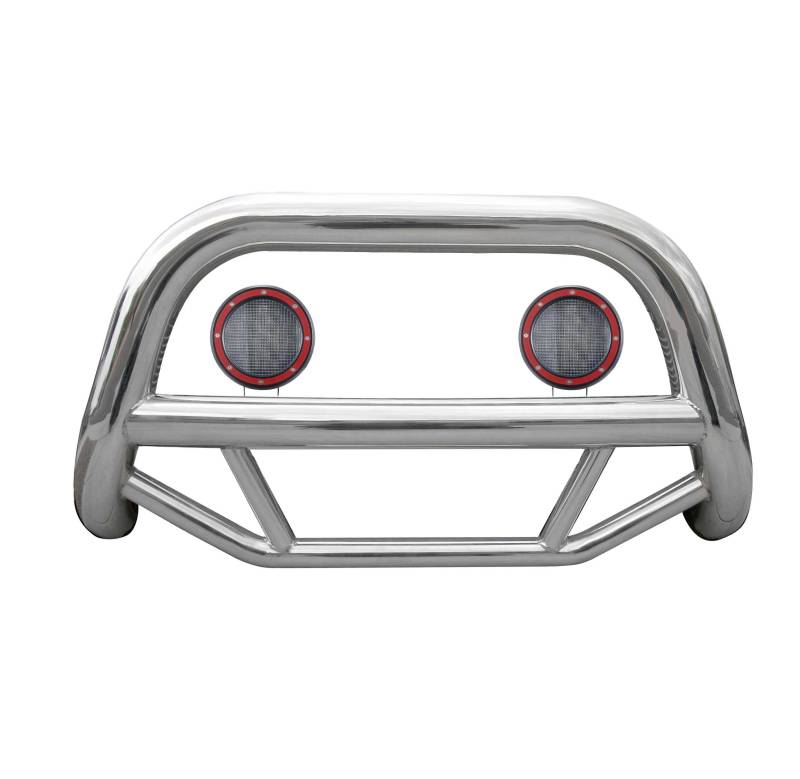 Max Bull Bar Kit Black Horse Off Road Max Bull Bar Kit Stainless Steel Stainless Steel No skid plate Pair of 5.3" Dia. LED Flood Lights w/ Red Trim Rings Wiring Harness and Switch Polished Stainless Steel Max Bull Bar Kit MBS-TOB4501-PLFR by Black Horse Off Road compatible with 2001-2005 Toyota RAV4 No-Drill/ Vehicle-Specific Application for Custom Fit Environmentally friendly option to chrome-plating Solid frame-mounted bolt-on Rust-resistant Stainless-Steel, mandrel-bent tubing