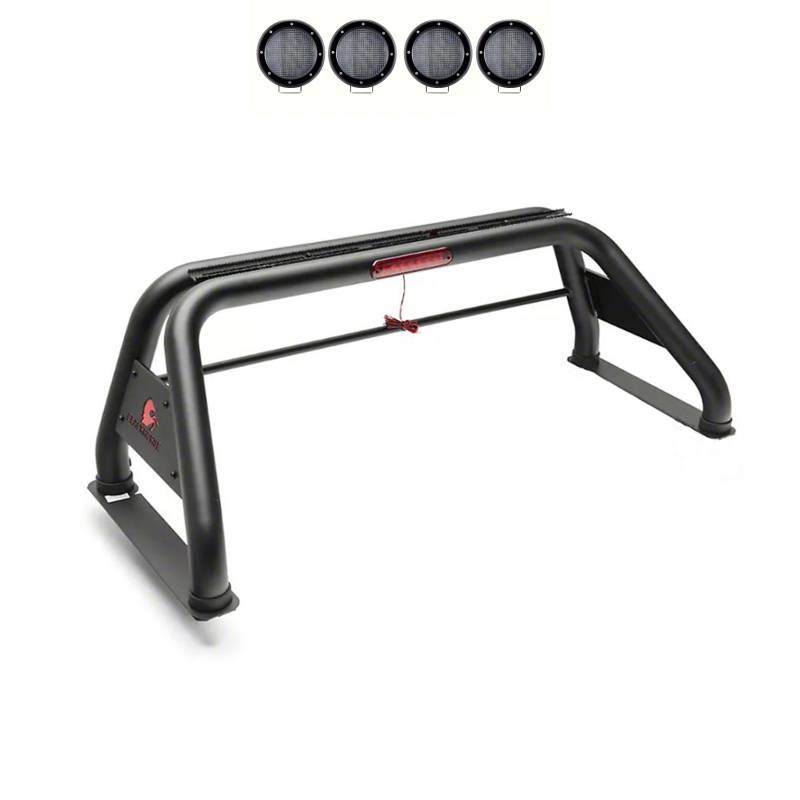 Classic Roll Bar Kit Black Horse Off Road Classic Roll Bar Kit Black Steel 2 sets of 5.3" Dia. Black LED Flood Lights w/ Harness and Switch Not Compatible with Tonneau Cover Classic Roll Bar Kit RB001BK-PLFB by Black Horse Off Road - Patent Approved This Classic Roll Bar is made from Black powder-coated 4 Inch steel round tubes Includes Third Brake Light Built in with Wiring Fabricated with OEM-grade precision and materials that meet or exceed the highest quality standards. The patented designs and attention to detail, ensures a long lasting and trouble-free service life.