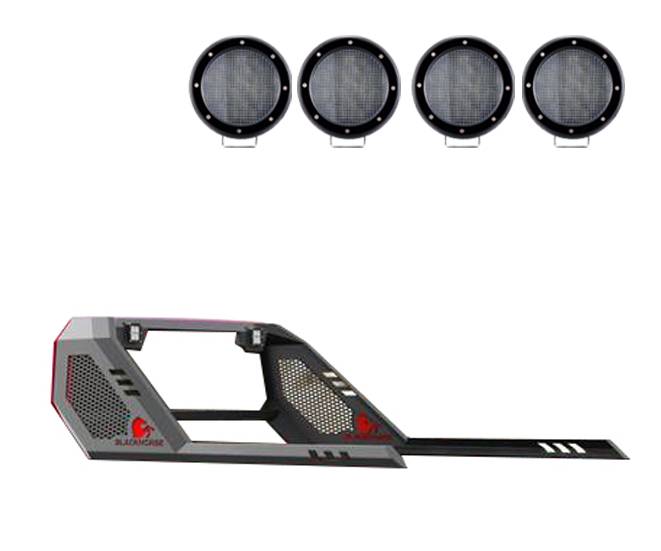 Vigor Roll Bar Kit Black Horse Off Road Vigor Roll Bar Kit Black Steel Modular 2 sets of 5.3" Dia. Black LED Flood Lights w/ Harness and Switch Doesn't work with Tonneau cover WITH ADJUSTABLE SQUARE LIGHT Patented Vigor Roll Bar with LED Cube Light 2 sets of 5.3" Dia. Black LED Flood Lights w/ Harness and Switch VIRB09B-PLFB by Black Horse Off Road - Patent Approved - compatible with 2020-2024 Jeep Gladiator This Vigor Roll Bar is made from Black powder coat finish high-grade materials to meet the strictest standards of high quality Designed with the utmost care and attention to detail, ensures superior reliability and provides long lasting and trouble-free service life. Patent Approved Design / Fabricated in cold-rolled mild steel Extend along the bed rails in order to add additional tie down points and to act as a platform for a wide variety of accessories.