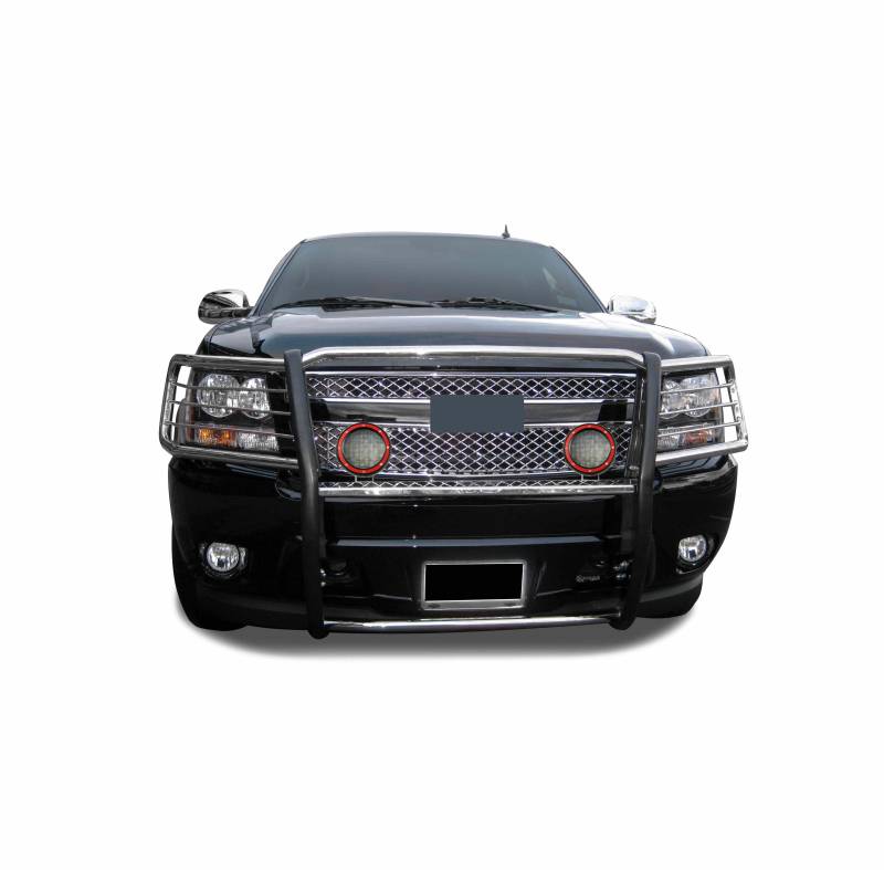 Grille Guard Kit Black Horse Off Road Grille Guard Kit'stainless Steel Stainless Steel Modular Pair of 5.3" Dia. LED Flood Lights w/ Red Trim Rings Wiring Harness and Switch It May Interfere with Vehicles equipped with Emergency Braking Systems, Adaptive Cruise Control and Parking Sensors Black Horse Off-Road Modular Design Polished Stainless Steel Grille Guard Kit17A037400MSS-PLFR Compatible with 2007-2013 Chevrolet Avalanche 2007-2014 Chevrolet Suburban 1500 2007-2014 Chevrolet Tahoe No-Drill/ Vehicle-Specific Application for Custom Fit Environmentally friendly option to chrome-plating / Solid frame-mounted bolt-on, no drill installation 1 1/2 ?diameter 16ga. 304 grade rust-resistant Stainless-Steel, mandrel-bent tubing