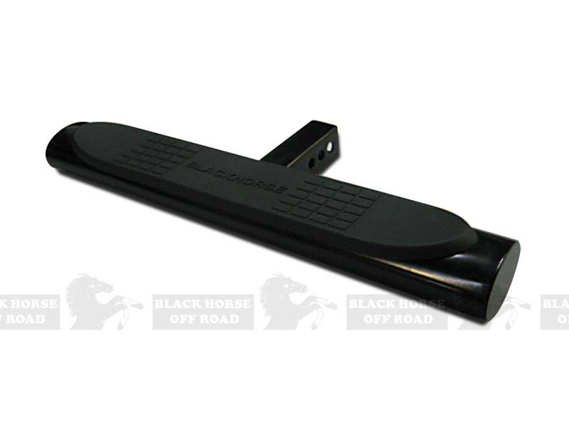Hitch Step Black Horse Off Road Hitch Step Black Steel Fits 2in hitch receiver Removable step features quick release pin 4.5" Oval Tube for a secure foothold Cold-rolled mild steel construction Chip-resistant black powder-coat over E-Coat primer for extra rust resistance Provides easy access to a truck bed, SUV and/or roof rack