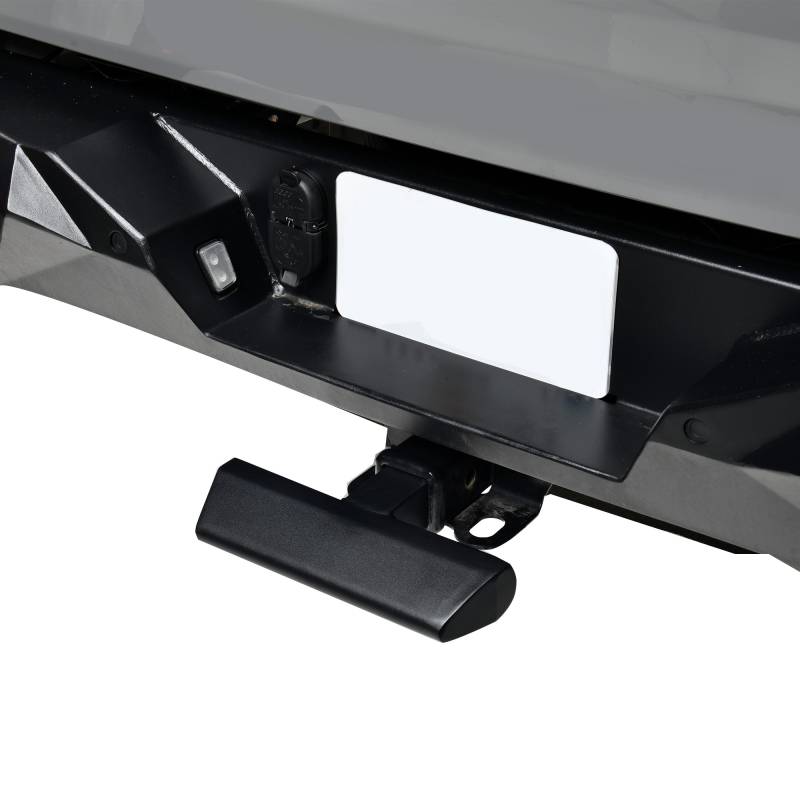 Rear Hitch Step Black Horse Off Road Rear Hitch Step Black Steel 2" Inlet -12" Long Welcome to our 12" long combination hitch-step and bumper guard, one of our Razor series of products Performs 3 functions as a step assist into a pick-up bed, gives easy access to luggage racks on SUVs and helps protect bumpers from rear end damage. Universal fit, mounts to 2" hitch receivers Unique tapered tube 3.5" wide by 2" high at its highest. Available in black powder-coated or polished stainless steel