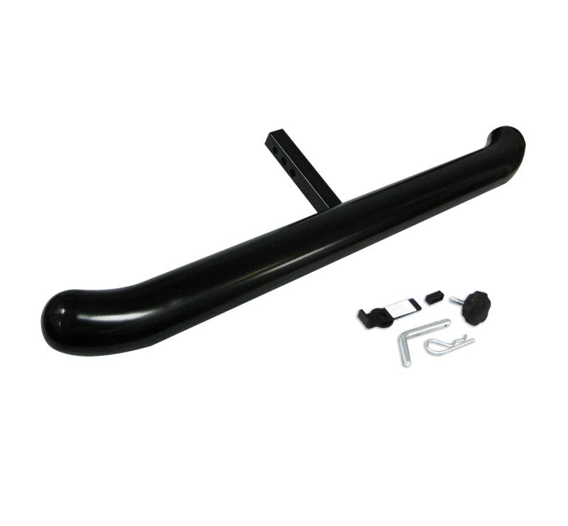 Rear Bumper Protector Black Horse Off Road Rear Bumper Protector Black Steel Fits 1.25in hitch receiver Compatible only with 1.25in Hitch Receiver Adds protection to your rear bumper 5" tube diameter Adjustable 3 level positioning Holds up to 300lbs