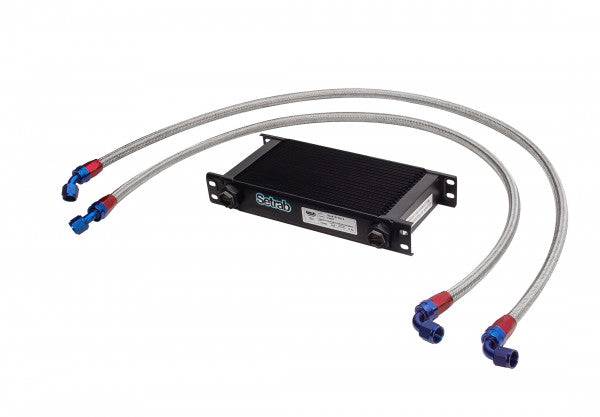 The Oil Cooler Kit is complete and includes all the necessary adapters, fittings, and hoses you will need for installation. This will require the drilling of mounting holes to install this kit. Instructions are included. Stainless steel oil lines are built to our specifications by Goodridge, the leader in motorsports for high performance braided lines, and used in most of our Oil Cooler Kit applications.