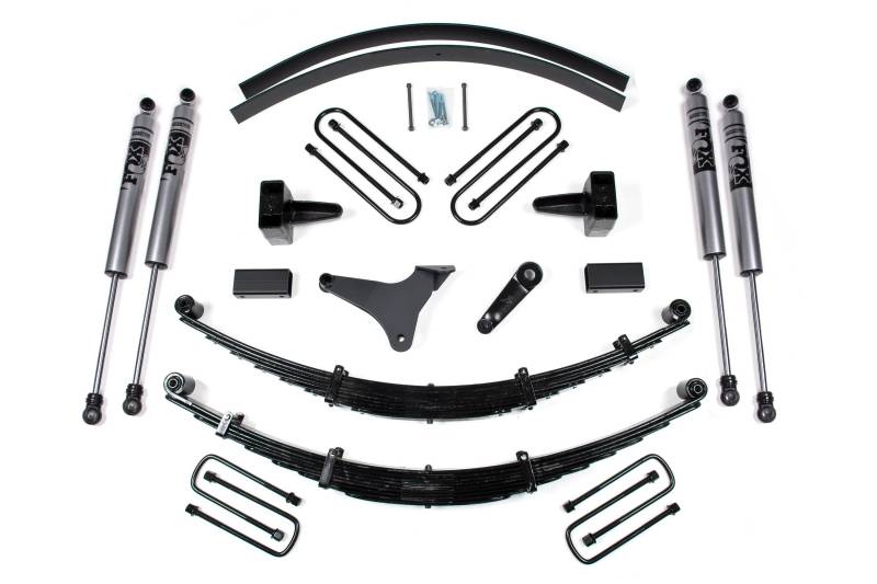 Zone Offroad 1999-2004 Ford Super Duty 4wd 6 Inch Suspension System. The newest offering for the leaf-sprung Super Duties is built around massive 9-leaf full height front leaf springs. The leaf springs thin, multi-leaf design provides a great ride while maintaining heavy-duty nature of the Super Duty.