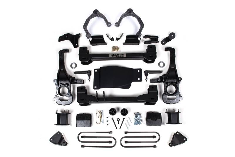 Take your Chevy ZR2 / ATX4 to new heights with this 4 inch lift kit from Zone Offroad. This system raises ride height 4 inch over stock and will sit at the same height as a 6 inch system would on a standard truck.