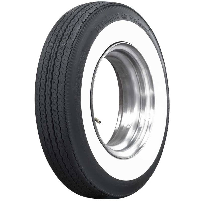 BFGoodrich 480 - 10 2" WW TT These classic BFGoodrich tires feature authentic profiles and tread designs of the sixties with beautiful wide whitewall styling. BFGoodrich bias ply wide whitewall tires are made in the USA and DOT/ECE (European Community) approved where applicable. Wide whitewalls are smooth, with all stampings and lettering in the the black portion of the sidewall and are covered by our exclusive life of the tread warranty. Please note that dimensions listed tread width, section width and overall diameter are non-scientific and based on an inflated tire, mounted on a wheel. Dimensions may vary due to rim width and inflation pressure. Tread patterns and sidewall styles vary, please click on individual tires below to view photos. BFGoodrich Classic Tires line offers original fitments and custom sizes for hot rods, classic trucks and more. Bias ply tire construction method was used from the 1900's through the 1970's on passenger cars and light trucks. Bright white rubber is added directly to the tire sidewall during initial construction of the carcass, resulting in a truly integrated, high-quality product after vulcanization.