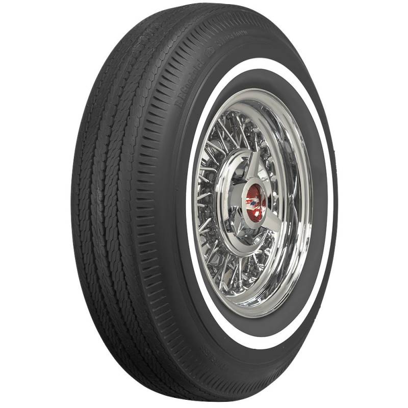 BFGoodrich 815 - 15 1" WW Get classic, good looking whitewall tires from BFGoodrich for your full size American car. These premium tires feature authentic tread pattern and classic pie crust sidewalls with narrow whitewalls. These classic BFGoodrich Bias Ply narrow whitewall tires boast genuine whitewall construction for an authentic bias ply tire. Install the correct tires for your classic for authentic, great looking style, and authentic tires and wheels are proven to increase the value of your collector car at the auction block! Help your classic cruiser look its very best with a brand new set of white wall tires from the world's leading supplier of collector tires and wheels. BFGoodrich Classic Tires line offers original fitments and custom sizes for hot rods, classic trucks and more. Bias ply tire construction method was used from the 1900's through the 1970's on passenger cars and light trucks. Genuine Narrow Whitewall Tire bright white rubber is added directly to the tire sidewall during initial construction of the carcass, resulting in a truly integrated, high-quality product after vulcanization.