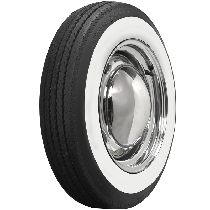 BFGoodrich 600 - 15 2 5/8" WW These classic BFGoodrich tires feature authentic profiles and tread designs of the sixties with beautiful wide whitewall styling. BFGoodrich bias ply wide whitewall tires are made in the USA and DOT/ECE (European Community) approved where applicable. Wide whitewalls are smooth, with all stampings and lettering in the the black portion of the sidewall and are covered by our exclusive life of the tread warranty. Please note that dimensions listed tread width, section width and overall diameter are non-scientific and based on an inflated tire, mounted on a wheel. Dimensions may vary due to rim width and inflation pressure. Tread patterns and sidewall styles vary, please click on individual tires below to view photos. BFGoodrich Classic Tires line offers original fitments and custom sizes for hot rods, classic trucks and more. Bias ply tire construction method was used from the 1900's through the 1970's on passenger cars and light trucks. Bright white rubber is added directly to the tire sidewall during initial construction of the carcass, resulting in a truly integrated, high-quality product after vulcanization.
