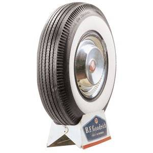 BFGoodrich 760 - 15 3 3/8" WW These beautiful classic BFG whitewall tires have stylish pie crust upper sidewalls and authentic tread designs. These tires are constructed as genuine whitewalls from the first step for a high quality finished product. BFGoodrich Bias Ply pie crust wide whitewall tires are also available with narrow whitewalls for later model classics. BFGoodrich Classic Tires line offers original fitments and custom sizes for hot rods, classic trucks and more. Bias ply tire construction method was used from the 1900's through the 1970's on passenger cars and light trucks. Bright white rubber is added directly to the tire sidewall during initial construction of the carcass, resulting in a truly integrated, high-quality product after vulcanization.