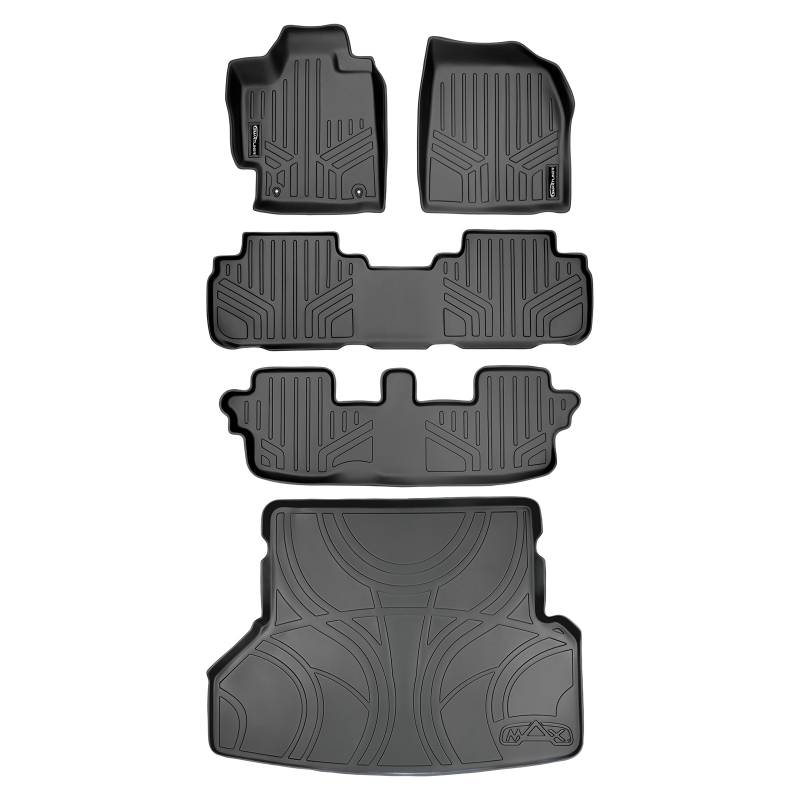 3 Row Floor Liners and Cargo Liner behind the 2nd Row Seats SMARTLINER floor liners are manufactured with a low-density polyethylene blend, so they leave no floor in your vehicle unprotected. With the help of the Smart Coverage raised lip and molded outer edge, these floor liners lock in all the dirt and liquid spills you can throw at it. Specifically, the raised lip prevents anything from reaching the carpet of your vehicle, protecting it from messy accidents. This designed shape is reinforced while still keeping the floor mat flexible. These floor liners also come in a multi-purpose, standard shape so they give the interior of your car the best fitting look possible. The SMARTLINER seeks to provide not just superior protection for your vehicle, but also enhances the overall appearance of your cars interior with its textured surfaces & modern design. Far more affordable compared with other brands. All weather protection against Snow, Mud, Sand, Salt Water and More! Spill Saver Lip (Prevents spills from reaching the carpet. ) Easy to Clean and Maintain (Detachable from Vehicle). All Smartliner USA products are meticulously engineered to fit each car exactly right.