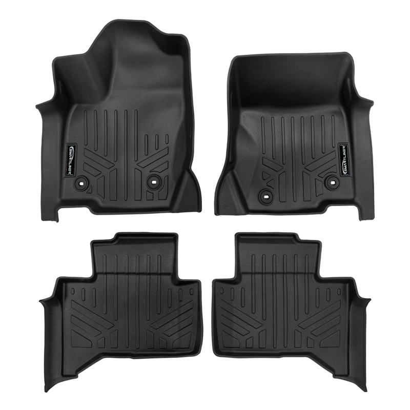 2 Row Floor Liners SMARTLINER floor liners are manufactured with a low-density polyethylene blend, so they leave no floor in your vehicle unprotected. With the help of the Smart Coverage raised lip and molded outer edge, these floor liners lock in all the dirt and liquid spills you can throw at it. Specifically, the raised lip prevents anything from reaching the carpet of your vehicle, protecting it from messy accidents. This designed shape is reinforced while still keeping the floor mat flexible. These floor liners also come in a multi-purpose, standard shape so they give the interior of your car the best fitting look possible. The SMARTLINER seeks to provide not just superior protection for your vehicle, but also enhances the overall appearance of your cars interior with its textured surfaces & modern design. Far more affordable compared with other brands. All weather protection against Snow, Mud, Sand, Salt Water and More! Spill Saver Lip (Prevents spills from reaching the carpet. ) Easy to Clean and Maintain (Detachable from Vehicle). All Smartliner USA products are meticulously engineered to fit each car exactly right.