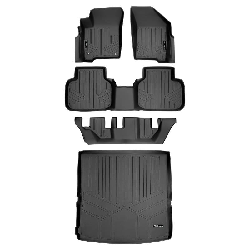 3 Row Floor Liners and Cargo Liner behind the 2nd Row Seats SMARTLINER floor liners are manufactured with a low-density polyethylene blend, so they leave no floor in your vehicle unprotected. With the help of the Smart Coverage raised lip and molded outer edge, these floor liners lock in all the dirt and liquid spills you can throw at it. Specifically, the raised lip prevents anything from reaching the carpet of your vehicle, protecting it from messy accidents. This designed shape is reinforced while still keeping the floor mat flexible. These floor liners also come in a multi-purpose, standard shape so they give the interior of your car the best fitting look possible. The SMARTLINER seeks to provide not just superior protection for your vehicle, but also enhances the overall appearance of your cars interior with its textured surfaces & modern design. Far more affordable compared with other brands. All weather protection against Snow, Mud, Sand, Salt Water and More! Spill Saver Lip (Prevents spills from reaching the carpet. ) Easy to Clean and Maintain (Detachable from Vehicle). All Smartliner USA products are meticulously engineered to fit each car exactly right.