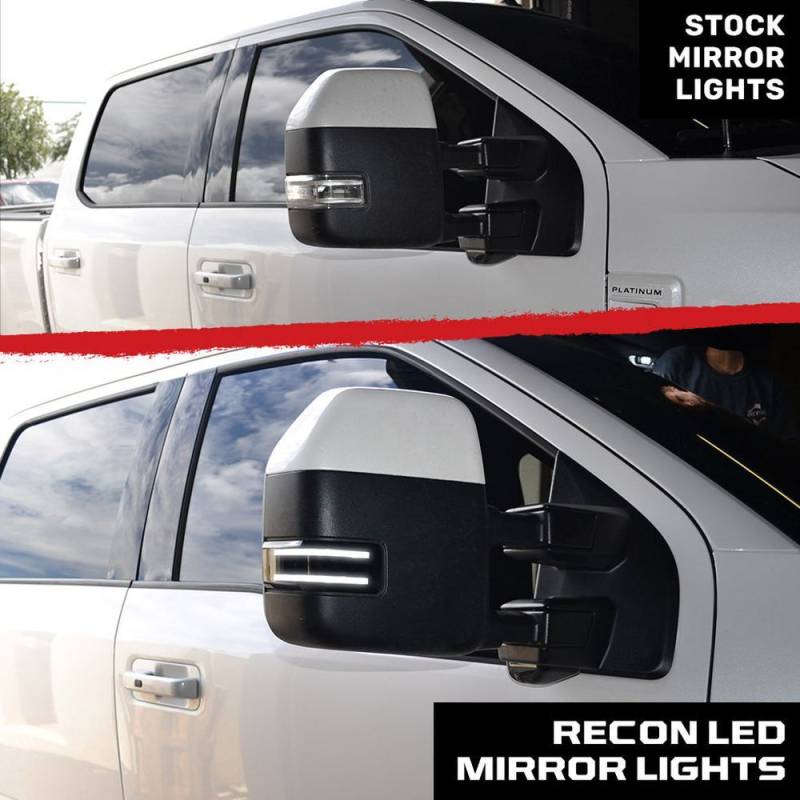 RECON has a wide selection of LED Mirror Lights & Lenses for trucks, in styles that are sure to match any driver's taste and preference. They provide your truck with an extra element of illumination; brighter than anything you can expect from the factory, with superior performance and ultimate durability. We don't design just any average LED Mirror Puddle Lights here at RECON. We design ones that are sure to stand out. Our parts come decked out with modern features to give your truck a major upgrade. After all, when you're buying aftermarket truck accessories you don't simply want to swap a piece out for something similar to what you already had. You want something bold, new, and different. At RECON, that's what we provide.