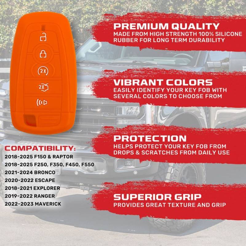 Recon 264002FD2OR Silicone Key Fob Cover Orange 18-25 F150/Super Duty