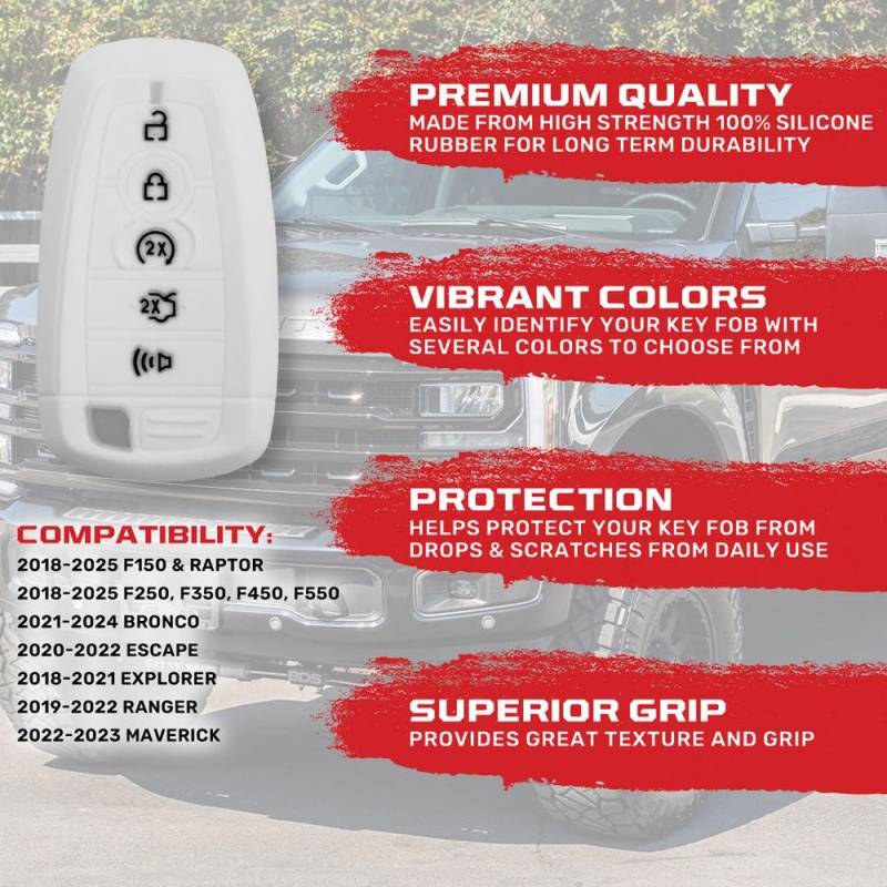 Recon 264002FD2WH Silicone Key Fob Cover White 18-25 F150/Super Duty