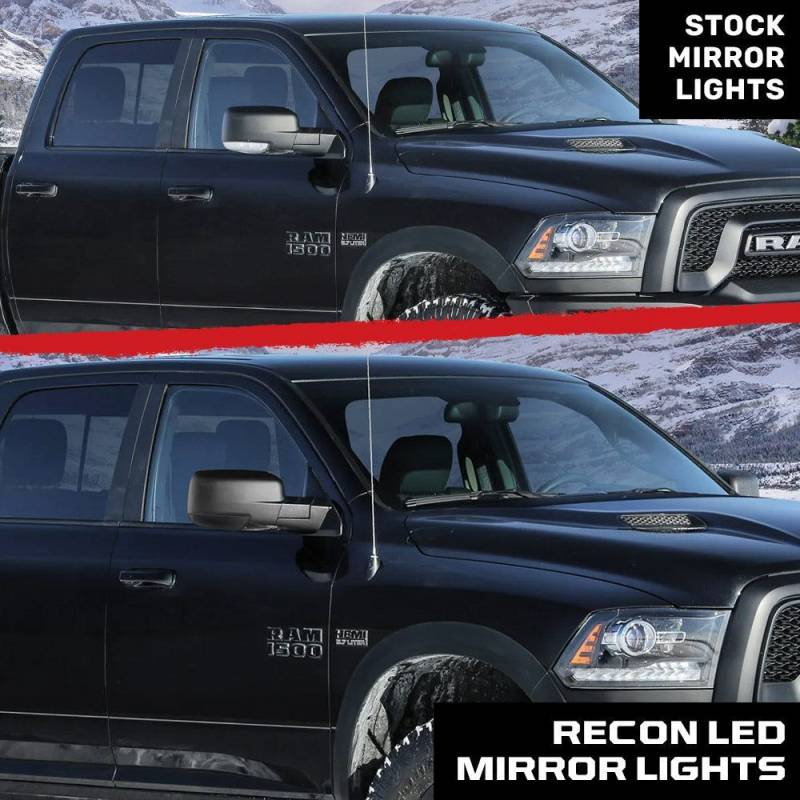 Recon 264248BK LED Side Mirror Puddle Light Kit White/Amberfor 09-18 Ram Truck