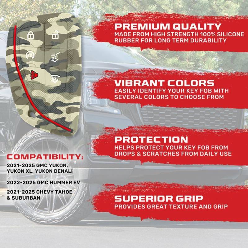 Recon 264002GM3GC Silicone Key Fob Cover Green CamoTahoe/Suburban/Yukon/XL